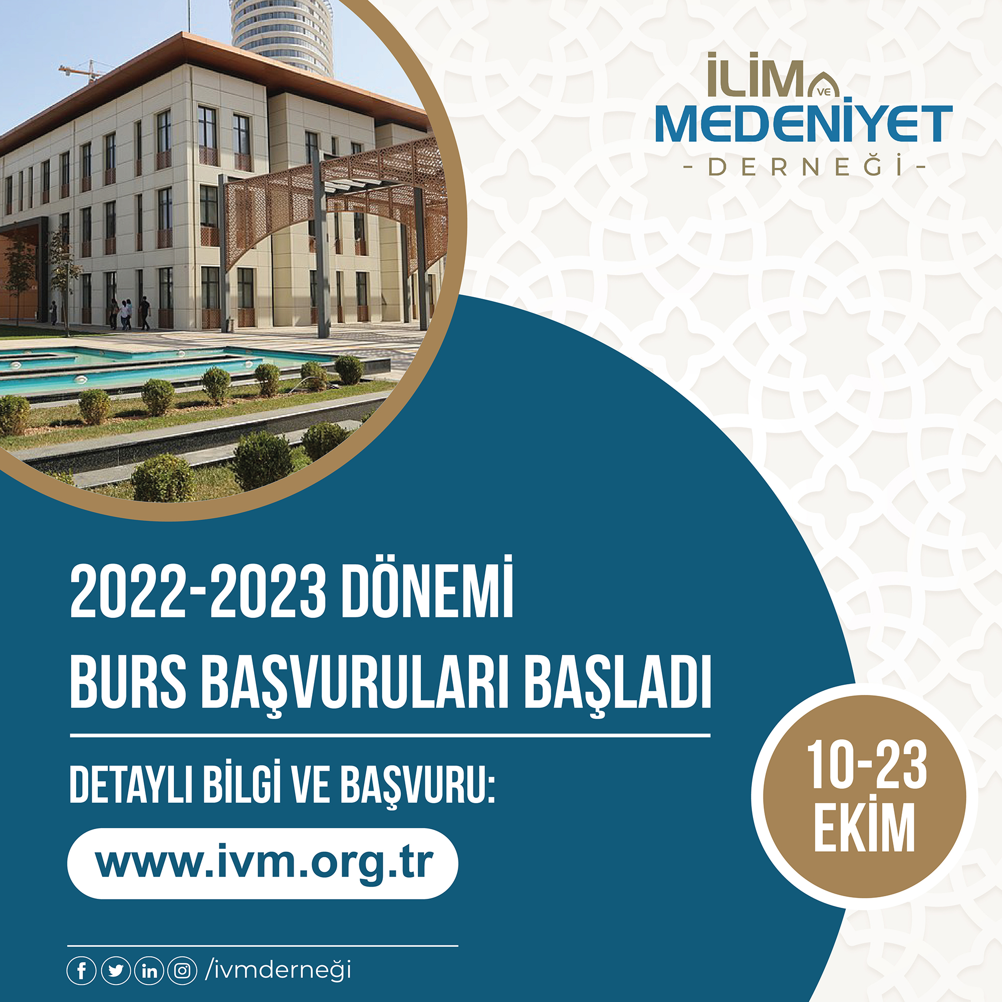 Burs müracaatları 10-23 Ekim 2022 tarihleri arasında web sitemiz üzerinden başvuru formunun doldurulması ile yapılacaktır.